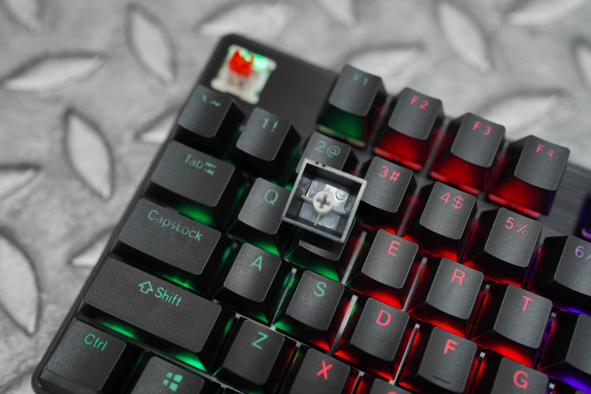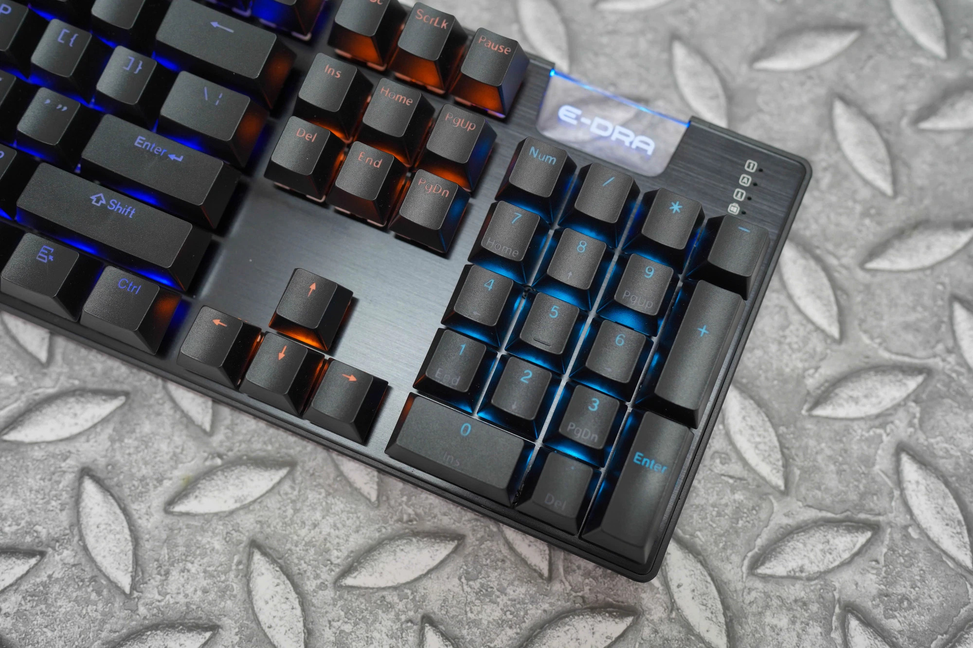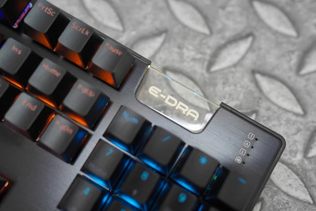Thêm nữa, vỏ phím được làm thấp, swich nổi lên trên plate với mặt trên làm bằng kim loại với độ hoàn thiện cao. Để tăng cảm giác gõ phím và độ bền cho phím, bộ keycap được sử dụng trên E-DRA EK312 làm bằng nhựa ABS với công nghệ doubleshot xuyên led.
